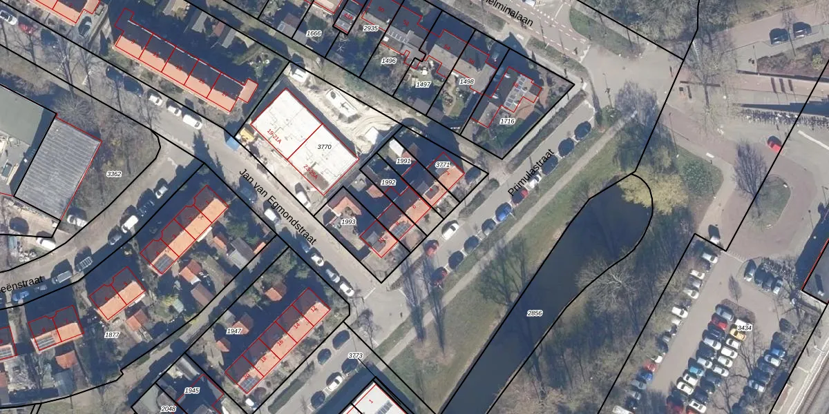 Gebruik de zoekbalk of klik op een perceel voor informatie over de adressen binnen dit perceel.