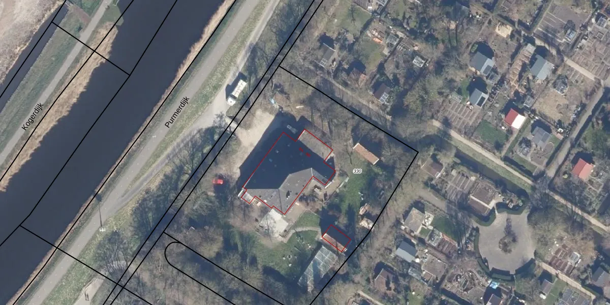 Het perceel waarop Purmerdijk 8-A staat heeft een oppervlakte van 3590 m². Dit is een zeer groot perceel. De perceeloppervlakte wordt geregistreerd door het Kadaster. Gedetailleerde informatie over de maten van dit perceel kunt u vinden in het rapport Kadastrale kaart met maatvoering van Purmerdijk 8-A.