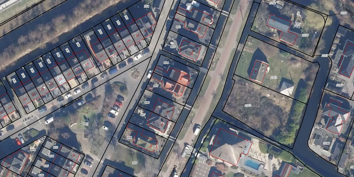 Gebruik de zoekbalk of klik op een perceel voor informatie over de adressen binnen dit perceel.
