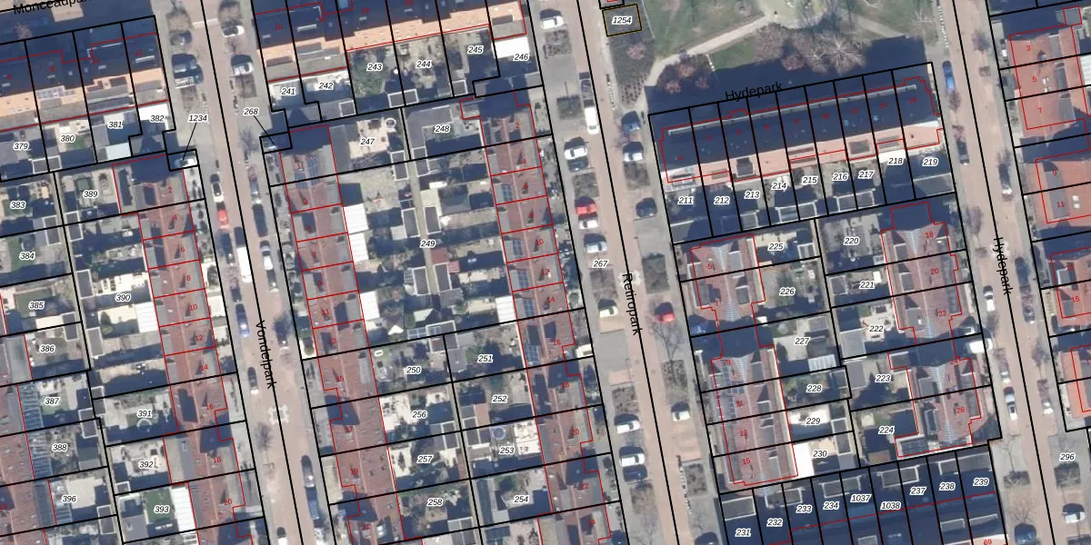 Het perceel waarop Retiropark 12 staat heeft een oppervlakte van 1712 m². Dit is een zeer groot perceel. De perceeloppervlakte wordt geregistreerd door het Kadaster. Gedetailleerde informatie over de maten van dit perceel kunt u vinden in het rapport Kadastrale kaart met maatvoering van Retiropark 12.