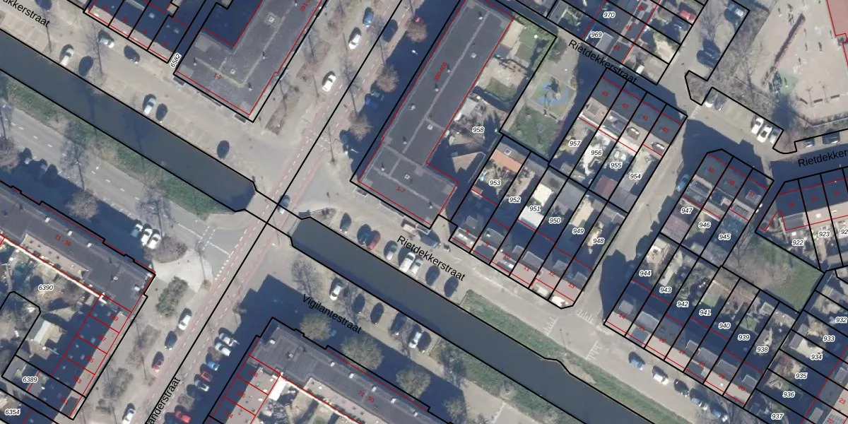 Het perceel waarop Rietdekkerstraat 7 staat heeft een oppervlakte van 1325 m². Dit is een zeer groot perceel. De perceeloppervlakte wordt geregistreerd door het Kadaster. Gedetailleerde informatie over de maten van dit perceel kunt u vinden in het rapport Kadastrale kaart met maatvoering van Rietdekkerstraat 7.