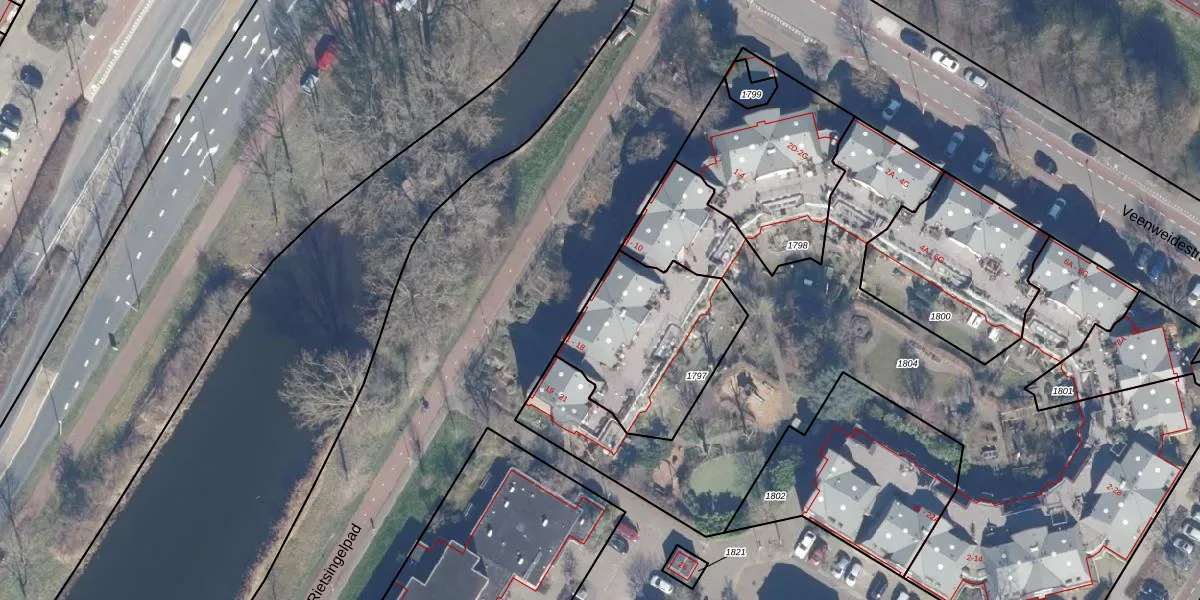 Het perceel waarop Rietsingel 14 staat heeft een oppervlakte van 606 m². Dit is een groot perceel. De perceeloppervlakte wordt geregistreerd door het Kadaster. Gedetailleerde informatie over de maten van dit perceel kunt u vinden in het rapport Kadastrale kaart met maatvoering van Rietsingel 14.