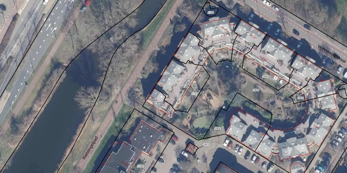 Het perceel waarop Rietsingel 16 staat heeft een oppervlakte van 606 m². Dit is een groot perceel. De perceeloppervlakte wordt geregistreerd door het Kadaster. Gedetailleerde informatie over de maten van dit perceel kunt u vinden in het rapport Kadastrale kaart met maatvoering van Rietsingel 16.