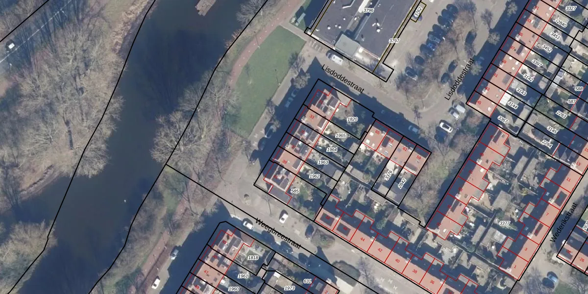 Gebruik de zoekbalk of klik op een perceel voor informatie over de adressen binnen dit perceel.