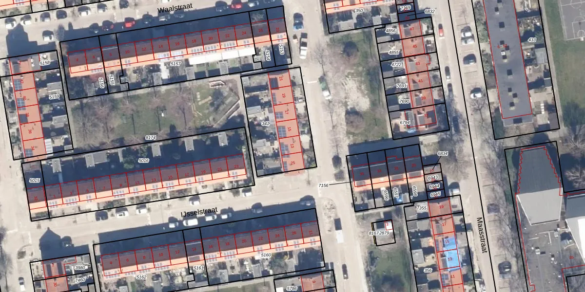 Het perceel waarop Rijnstraat 13 staat heeft een oppervlakte van 713 m². Dit is een groot perceel. De perceeloppervlakte wordt geregistreerd door het Kadaster. Gedetailleerde informatie over de maten van dit perceel kunt u vinden in het rapport Kadastrale kaart met maatvoering van Rijnstraat 13.