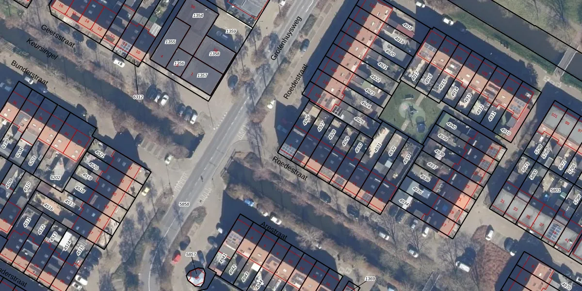Het perceel waarop Roedestraat 1 staat heeft een oppervlakte van 111 m². Dit is een middelgroot perceel. De perceeloppervlakte wordt geregistreerd door het Kadaster. Gedetailleerde informatie over de maten van dit perceel kunt u vinden in het rapport Kadastrale kaart met maatvoering van Roedestraat 1.