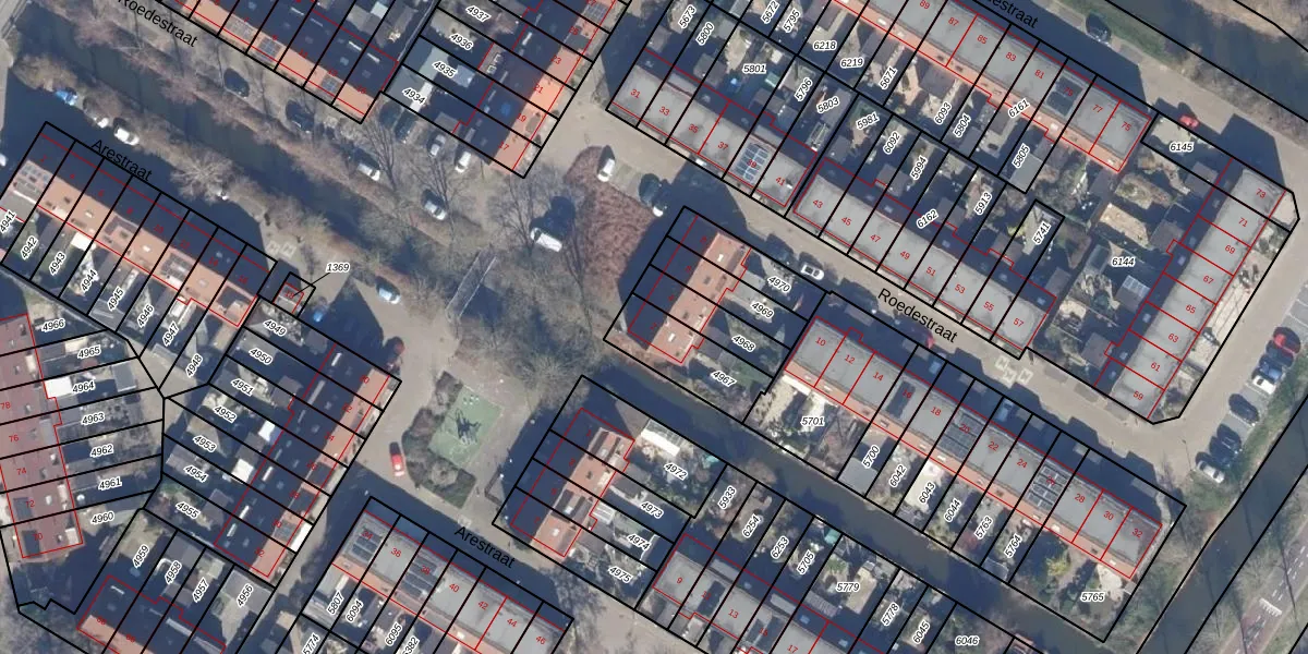 Het perceel waarop Roedestraat 2 staat heeft een oppervlakte van 210 m². Dit is een middelgroot perceel. De perceeloppervlakte wordt geregistreerd door het Kadaster. Gedetailleerde informatie over de maten van dit perceel kunt u vinden in het rapport Kadastrale kaart met maatvoering van Roedestraat 2.
