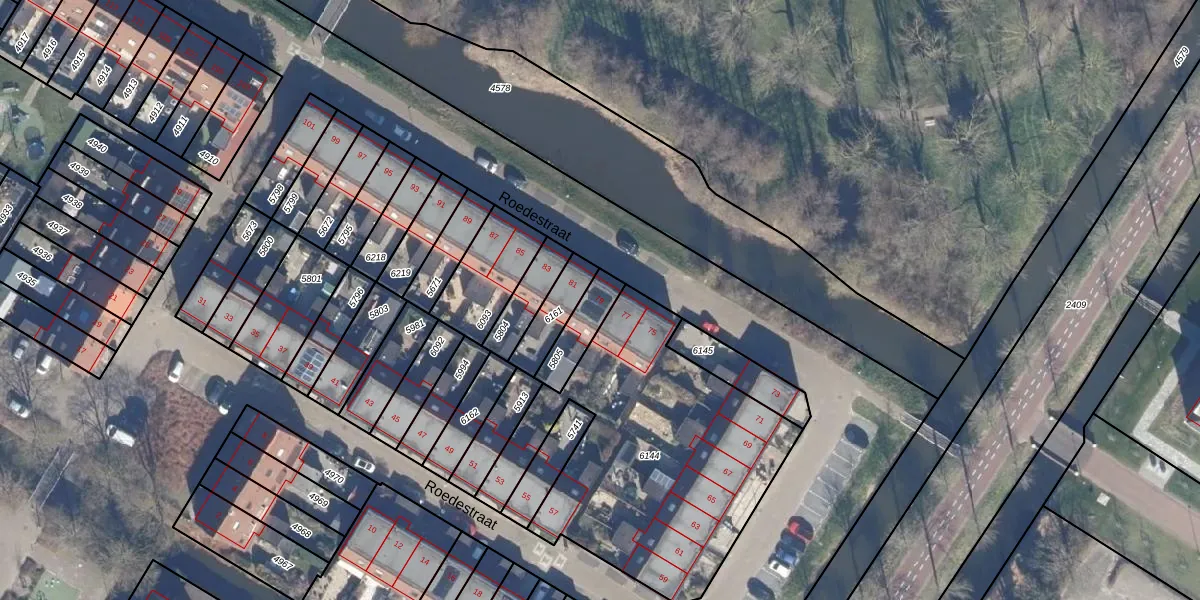 Roedestraat 79 is gelegen op kadastraal perceel PMR00A5805. Deze kadastrale aanduiding is uniek en wordt gebruikt door het Kadaster om eigendomsrechten en andere zakelijke rechten vast te leggen. Het perceel maakt onderdeel uit van de kadastrale gemeente Purmerend.