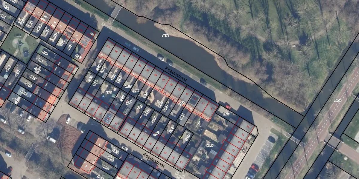 Het perceel waarop Roedestraat 83 staat heeft een oppervlakte van 108 m². Dit is een middelgroot perceel. De perceeloppervlakte wordt geregistreerd door het Kadaster. Gedetailleerde informatie over de maten van dit perceel kunt u vinden in het rapport Kadastrale kaart met maatvoering van Roedestraat 83.