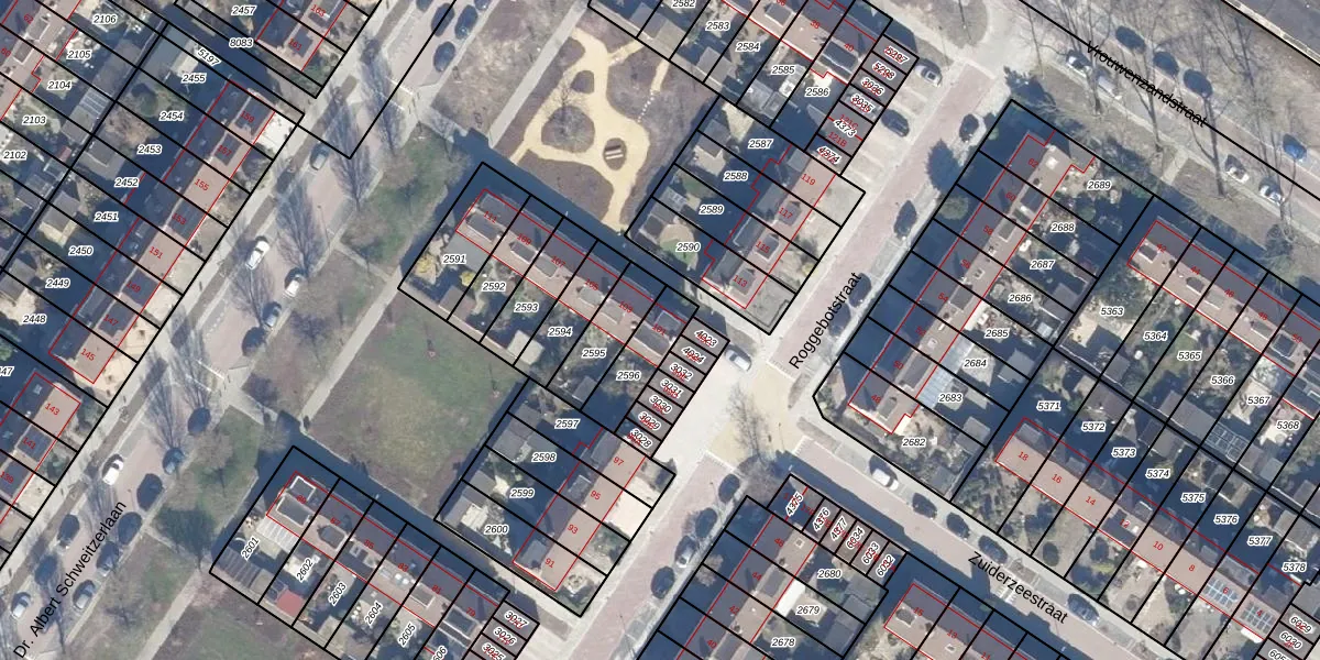 Gebruik de zoekbalk of klik op een perceel voor informatie over de adressen binnen dit perceel.