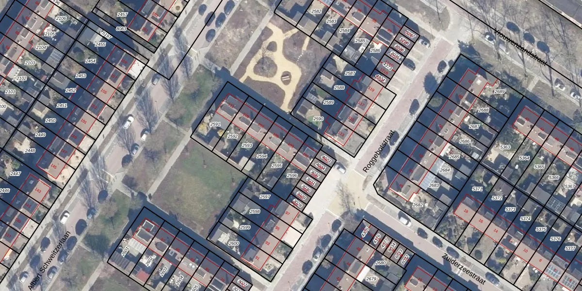 Het perceel waarop Roggebotstraat 103 staat heeft een oppervlakte van 141 m². Dit is een middelgroot perceel. De perceeloppervlakte wordt geregistreerd door het Kadaster. Gedetailleerde informatie over de maten van dit perceel kunt u vinden in het rapport Kadastrale kaart met maatvoering van Roggebotstraat 103.