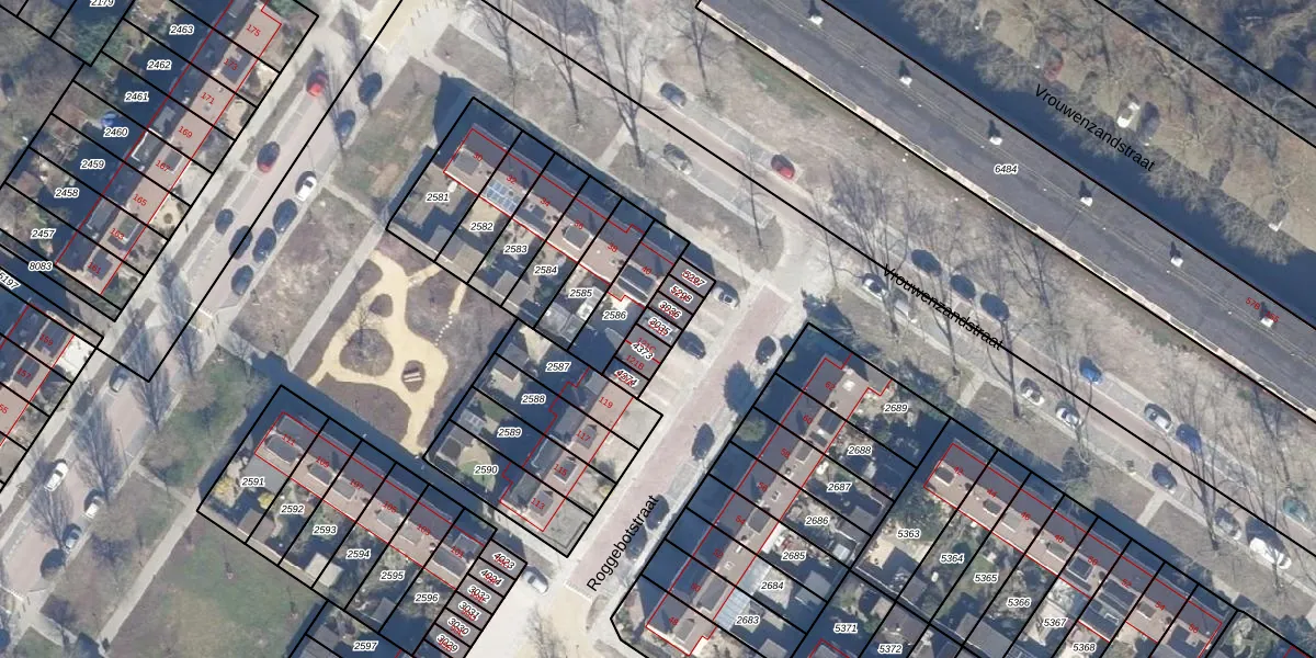 Gebruik de zoekbalk of klik op een perceel voor informatie over de adressen binnen dit perceel.