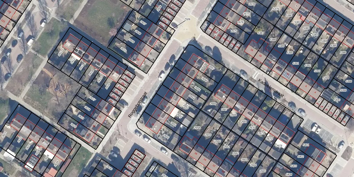 Gebruik de zoekbalk of klik op een perceel voor informatie over de adressen binnen dit perceel.