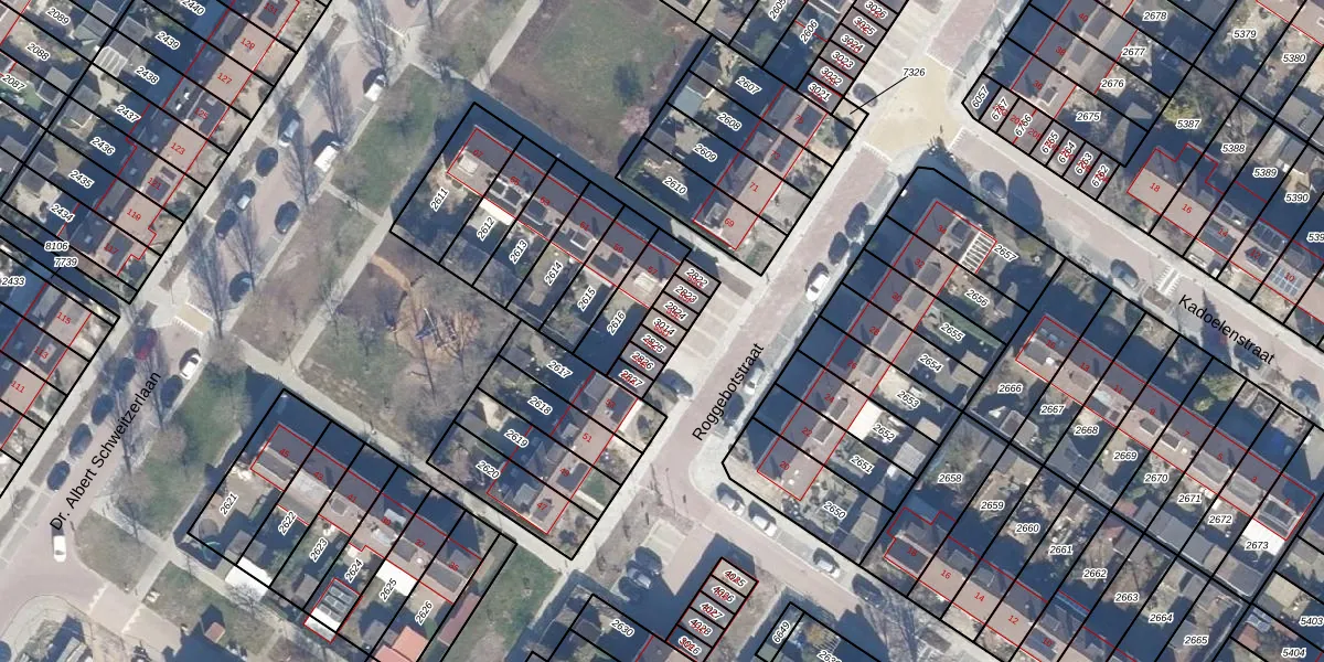 Gebruik de zoekbalk of klik op een perceel voor informatie over de adressen binnen dit perceel.