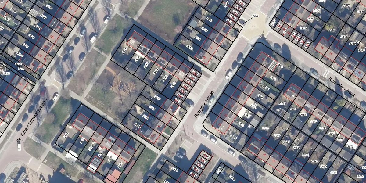 Gebruik de zoekbalk of klik op een perceel voor informatie over de adressen binnen dit perceel.
