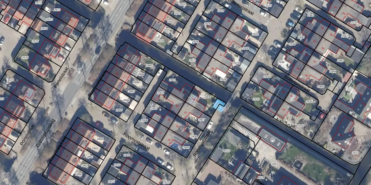 Het perceel waarop Roomvatstraat 20 staat heeft een oppervlakte van 184 m². Dit is een middelgroot perceel. De perceeloppervlakte wordt geregistreerd door het Kadaster. Gedetailleerde informatie over de maten van dit perceel kunt u vinden in het rapport Kadastrale kaart met maatvoering van Roomvatstraat 20.