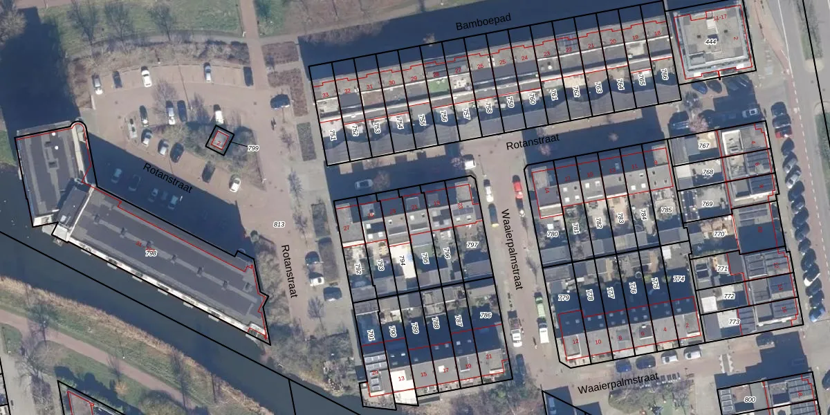 Het perceel waarop Rotanstraat 21 staat heeft een oppervlakte van 135 m². Dit is een middelgroot perceel. De perceeloppervlakte wordt geregistreerd door het Kadaster. Gedetailleerde informatie over de maten van dit perceel kunt u vinden in het rapport Kadastrale kaart met maatvoering van Rotanstraat 21.