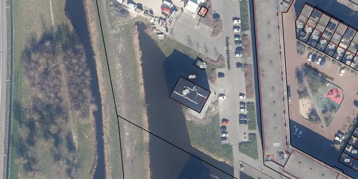 Het perceel waarop Rotterdamhaven 154-B staat heeft een oppervlakte van 253 m². Dit is een middelgroot perceel. De perceeloppervlakte wordt geregistreerd door het Kadaster. Gedetailleerde informatie over de maten van dit perceel kunt u vinden in het rapport Kadastrale kaart met maatvoering van Rotterdamhaven 154-B.