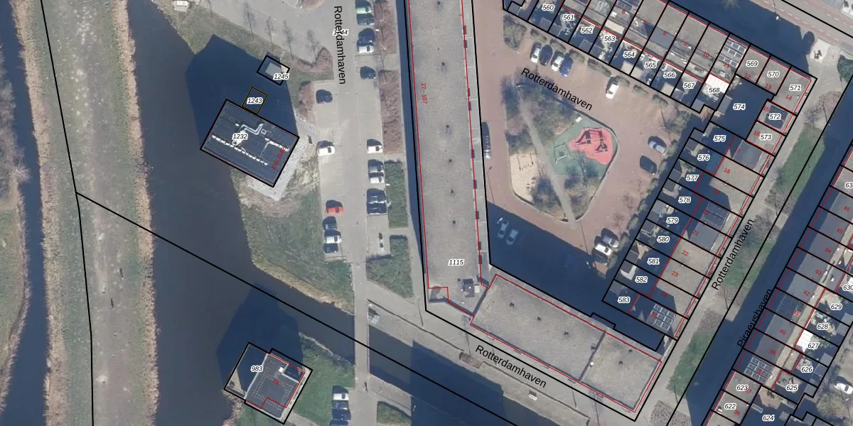 Het perceel waarop Rotterdamhaven 31 staat heeft een oppervlakte van 2490 m². Dit is een zeer groot perceel. De perceeloppervlakte wordt geregistreerd door het Kadaster. Gedetailleerde informatie over de maten van dit perceel kunt u vinden in het rapport Kadastrale kaart met maatvoering van Rotterdamhaven 31.