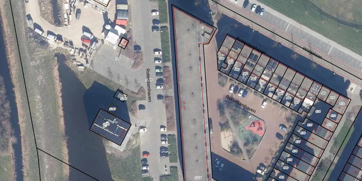 Het perceel waarop Rotterdamhaven 37 staat heeft een oppervlakte van 2490 m². Dit is een zeer groot perceel. De perceeloppervlakte wordt geregistreerd door het Kadaster. Gedetailleerde informatie over de maten van dit perceel kunt u vinden in het rapport Kadastrale kaart met maatvoering van Rotterdamhaven 37.