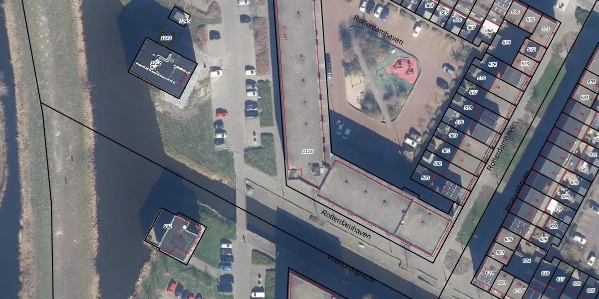 Het perceel waarop Rotterdamhaven 65 staat heeft een oppervlakte van 2490 m². Dit is een zeer groot perceel. De perceeloppervlakte wordt geregistreerd door het Kadaster. Gedetailleerde informatie over de maten van dit perceel kunt u vinden in het rapport Kadastrale kaart met maatvoering van Rotterdamhaven 65.