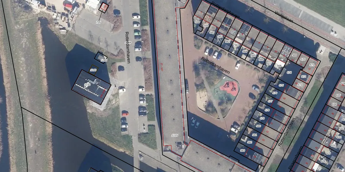 Het perceel waarop Rotterdamhaven 87 staat heeft een oppervlakte van 2490 m². Dit is een zeer groot perceel. De perceeloppervlakte wordt geregistreerd door het Kadaster. Gedetailleerde informatie over de maten van dit perceel kunt u vinden in het rapport Kadastrale kaart met maatvoering van Rotterdamhaven 87.