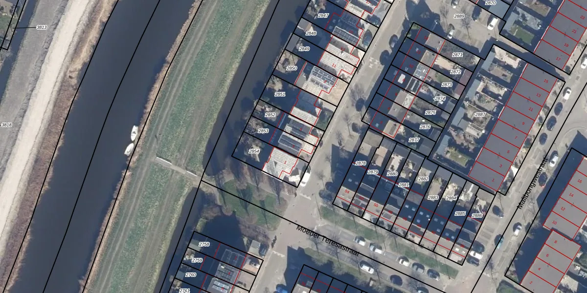 Het adres is gelegen op perceel 2853 in de sectie H en de kadastrale gemeente Purmerend. De kadastrale aanduiding is aldus PMR00-H-2853. De gemiddelde perceelgrootte in Purmerend is 876,76 m². Dit perceel is kleiner: de perceeloppervlakte bedraagt 152 m². Het grootste perceel in de kadastrale gemeente is 64,8 ha. Het kleinste perceel heeft een oppervlakte van 0 m². Dit is het enige adres dat aanwezig is op het perceel. De huidige grenzen van het perceel zijn digitaal in de Basisregistratie Kadaster (BRK) geregistreerd op 23-10-1997.