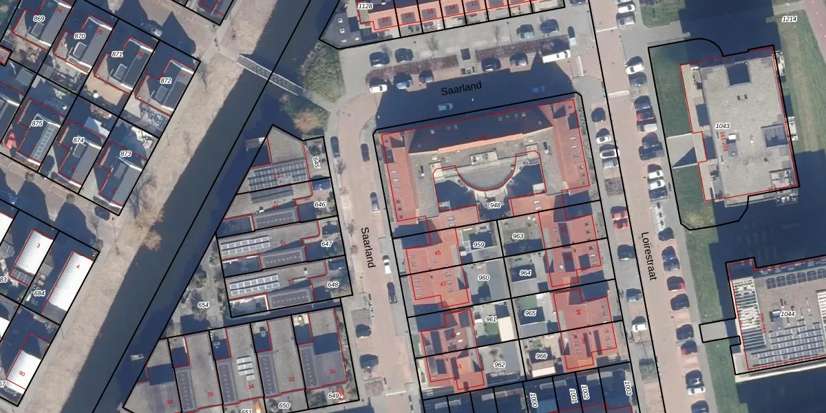 Het perceel waarop Saarland 21 staat heeft een oppervlakte van 1370 m². Dit is een zeer groot perceel. De perceeloppervlakte wordt geregistreerd door het Kadaster. Gedetailleerde informatie over de maten van dit perceel kunt u vinden in het rapport Kadastrale kaart met maatvoering van Saarland 21.