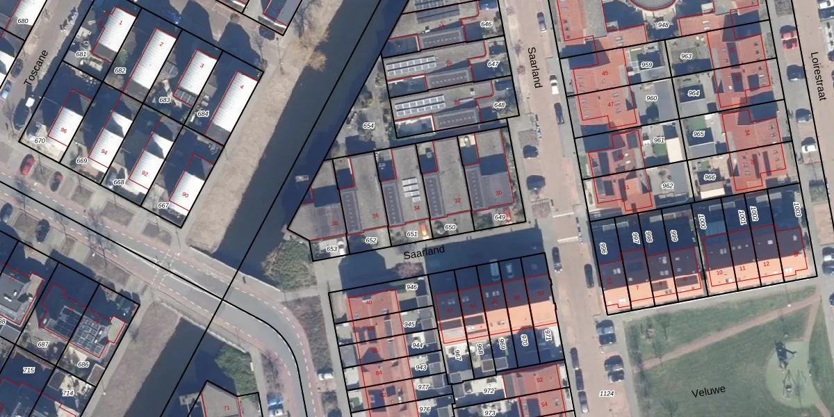 Gebruik de zoekbalk of klik op een perceel voor informatie over de adressen binnen dit perceel.