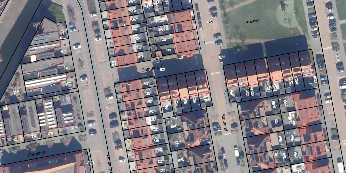 Gebruik de zoekbalk of klik op een perceel voor informatie over de adressen binnen dit perceel.