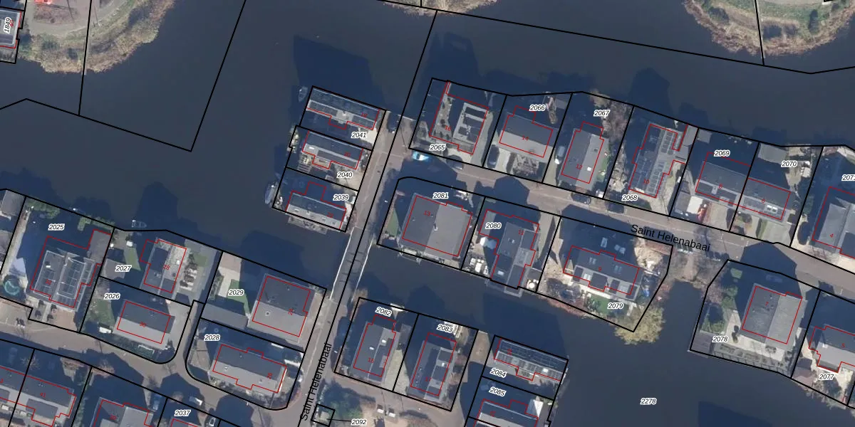 Het perceel waarop Saint Helenabaai 13 staat heeft een oppervlakte van 360 m². Dit is een groot perceel. De perceeloppervlakte wordt geregistreerd door het Kadaster. Gedetailleerde informatie over de maten van dit perceel kunt u vinden in het rapport Kadastrale kaart met maatvoering van Saint Helenabaai 13.