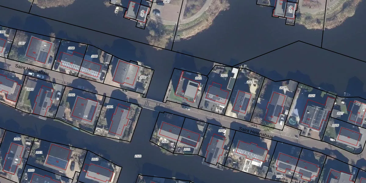 Het perceel waarop Saint Helenabaai 40 staat heeft een oppervlakte van 355 m². Dit is een groot perceel. De perceeloppervlakte wordt geregistreerd door het Kadaster. Gedetailleerde informatie over de maten van dit perceel kunt u vinden in het rapport Kadastrale kaart met maatvoering van Saint Helenabaai 40.