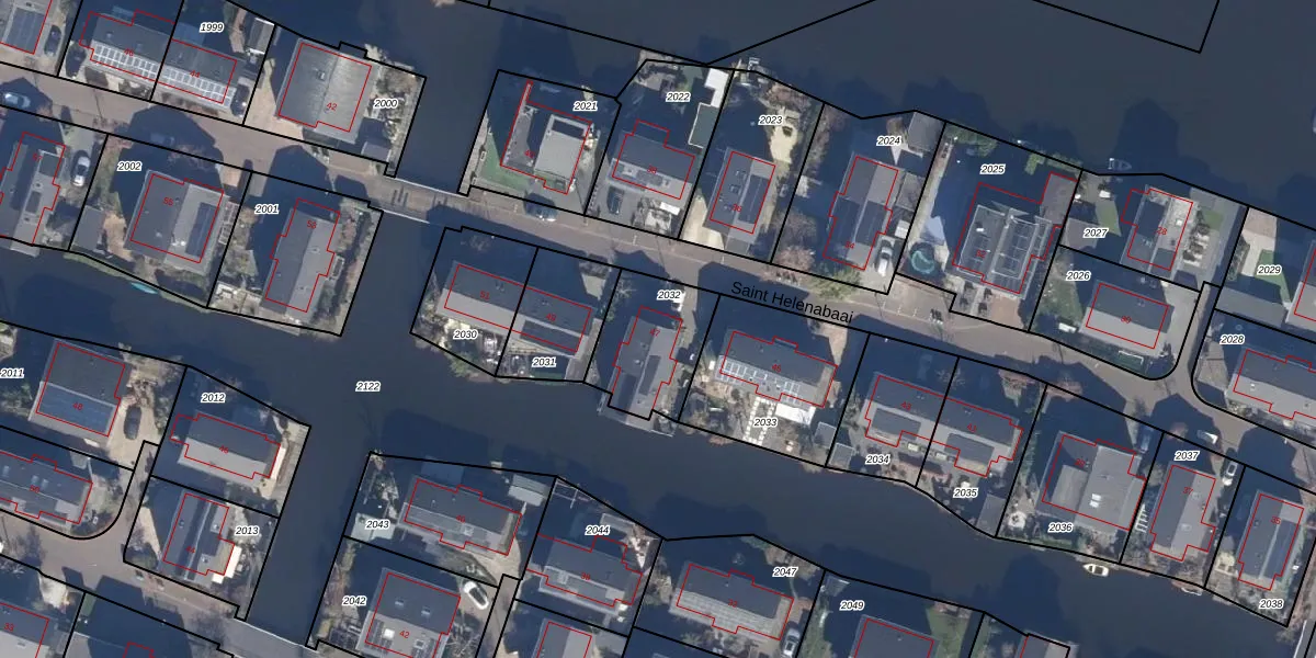 Het perceel waarop Saint Helenabaai 47 staat heeft een oppervlakte van 310 m². Dit is een groot perceel. De perceeloppervlakte wordt geregistreerd door het Kadaster. Gedetailleerde informatie over de maten van dit perceel kunt u vinden in het rapport Kadastrale kaart met maatvoering van Saint Helenabaai 47.