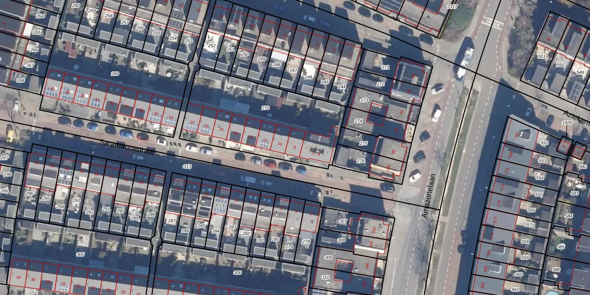 Het perceel waarop Saramaccastraat 8 staat heeft een oppervlakte van 1229 m². Dit is een zeer groot perceel. De perceeloppervlakte wordt geregistreerd door het Kadaster. Gedetailleerde informatie over de maten van dit perceel kunt u vinden in het rapport Kadastrale kaart met maatvoering van Saramaccastraat 8.