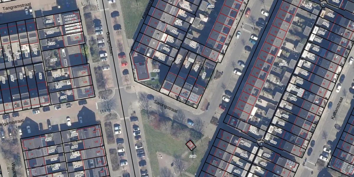 Het perceel waarop Sarongstraat 3 staat heeft een oppervlakte van 153 m². Dit is een middelgroot perceel. De perceeloppervlakte wordt geregistreerd door het Kadaster. Gedetailleerde informatie over de maten van dit perceel kunt u vinden in het rapport Kadastrale kaart met maatvoering van Sarongstraat 3.