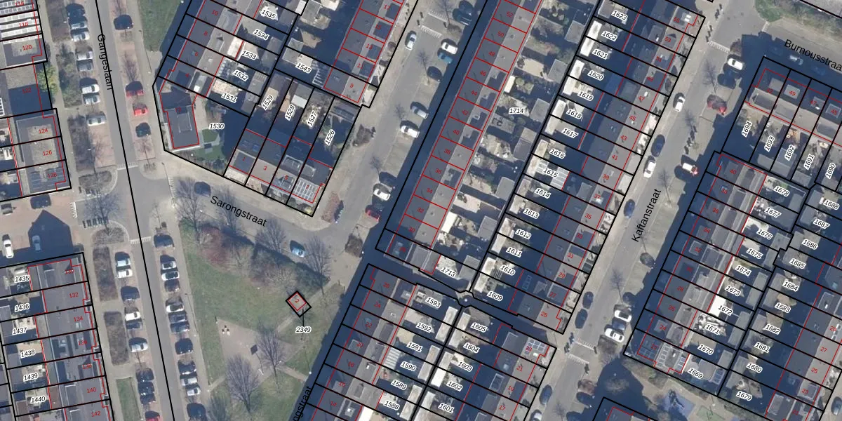 Het perceel waarop Sarongstraat 32 staat heeft een oppervlakte van 1750 m². Dit is een zeer groot perceel. De perceeloppervlakte wordt geregistreerd door het Kadaster. Gedetailleerde informatie over de maten van dit perceel kunt u vinden in het rapport Kadastrale kaart met maatvoering van Sarongstraat 32.