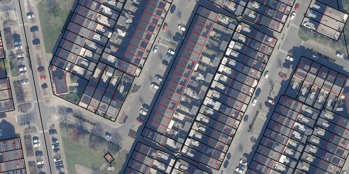 Het perceel waarop Sarongstraat 40 staat heeft een oppervlakte van 1750 m². Dit is een zeer groot perceel. De perceeloppervlakte wordt geregistreerd door het Kadaster. Gedetailleerde informatie over de maten van dit perceel kunt u vinden in het rapport Kadastrale kaart met maatvoering van Sarongstraat 40.