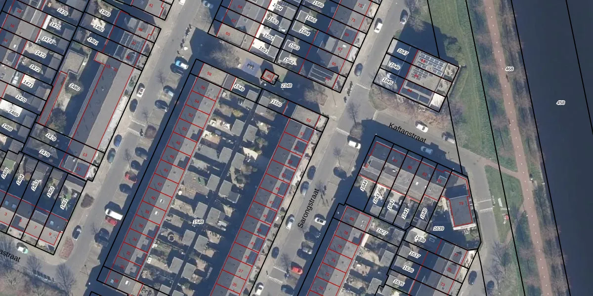 Het perceel waarop Sarongstraat 55 staat heeft een oppervlakte van 3498 m². Dit is een zeer groot perceel. De perceeloppervlakte wordt geregistreerd door het Kadaster. Gedetailleerde informatie over de maten van dit perceel kunt u vinden in het rapport Kadastrale kaart met maatvoering van Sarongstraat 55.