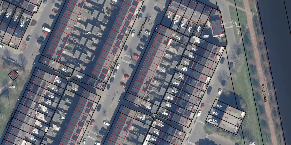 Het perceel waarop Sarongstraat 68 staat heeft een oppervlakte van 1126 m². Dit is een zeer groot perceel. De perceeloppervlakte wordt geregistreerd door het Kadaster. Gedetailleerde informatie over de maten van dit perceel kunt u vinden in het rapport Kadastrale kaart met maatvoering van Sarongstraat 68.