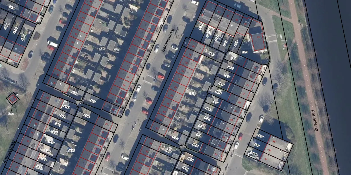 Het perceel waarop Sarongstraat 70 staat heeft een oppervlakte van 1126 m². Dit is een zeer groot perceel. De perceeloppervlakte wordt geregistreerd door het Kadaster. Gedetailleerde informatie over de maten van dit perceel kunt u vinden in het rapport Kadastrale kaart met maatvoering van Sarongstraat 70.