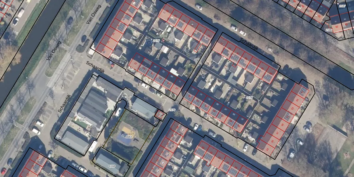 Het perceel waarop Schaardijk 27 staat heeft een oppervlakte van 2590 m². Dit is een zeer groot perceel. De perceeloppervlakte wordt geregistreerd door het Kadaster. Gedetailleerde informatie over de maten van dit perceel kunt u vinden in het rapport Kadastrale kaart met maatvoering van Schaardijk 27.