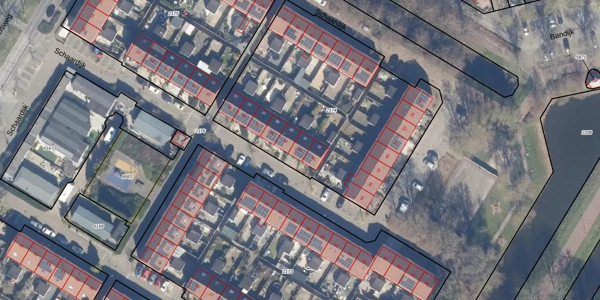 Het perceel waarop Schaardijk 39 staat heeft een oppervlakte van 2902 m². Dit is een zeer groot perceel. De perceeloppervlakte wordt geregistreerd door het Kadaster. Gedetailleerde informatie over de maten van dit perceel kunt u vinden in het rapport Kadastrale kaart met maatvoering van Schaardijk 39.