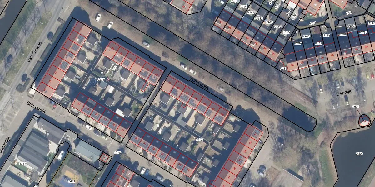 Het perceel waarop Schaardijk 67 staat heeft een oppervlakte van 2902 m². Dit is een zeer groot perceel. De perceeloppervlakte wordt geregistreerd door het Kadaster. Gedetailleerde informatie over de maten van dit perceel kunt u vinden in het rapport Kadastrale kaart met maatvoering van Schaardijk 67.