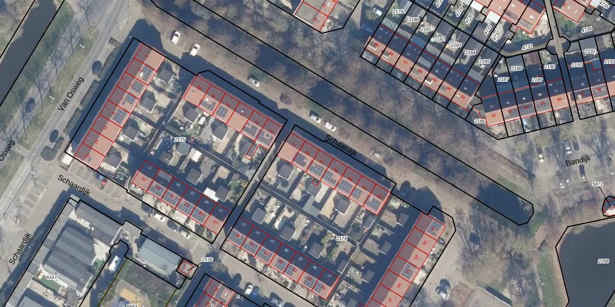 Het perceel waarop Schaardijk 69 staat heeft een oppervlakte van 2902 m². Dit is een zeer groot perceel. De perceeloppervlakte wordt geregistreerd door het Kadaster. Gedetailleerde informatie over de maten van dit perceel kunt u vinden in het rapport Kadastrale kaart met maatvoering van Schaardijk 69.