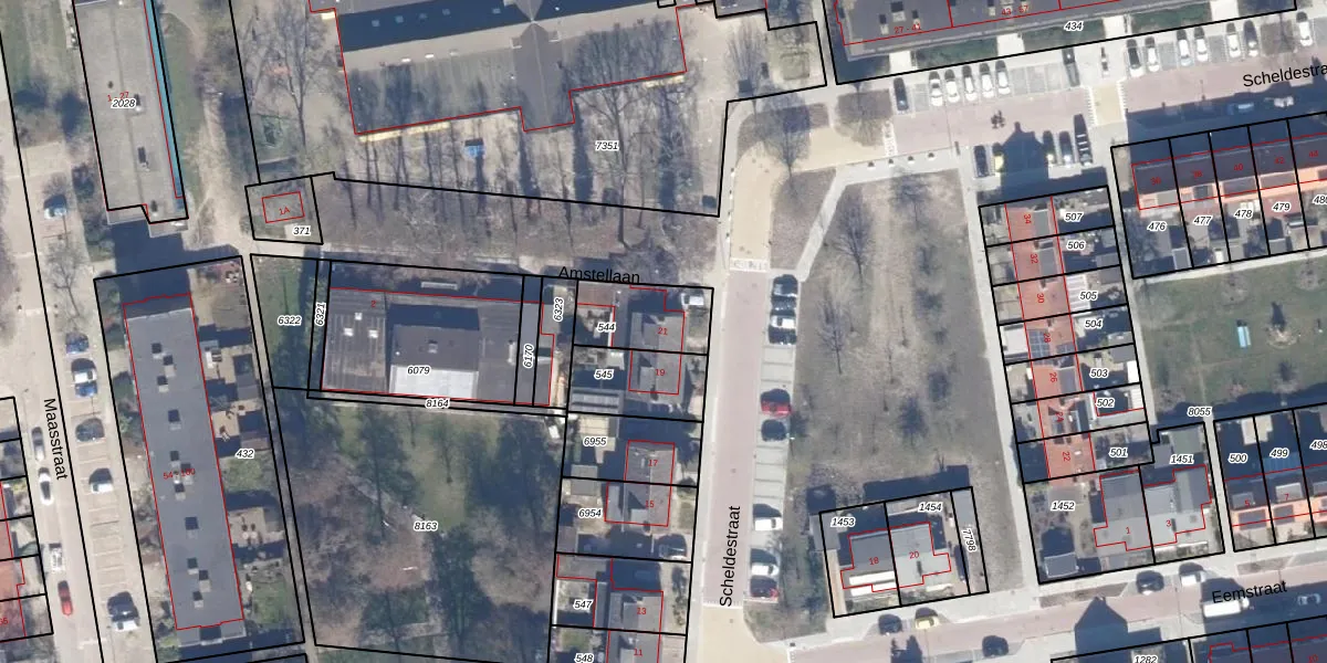 Gebruik de zoekbalk of klik op een perceel voor informatie over de adressen binnen dit perceel.