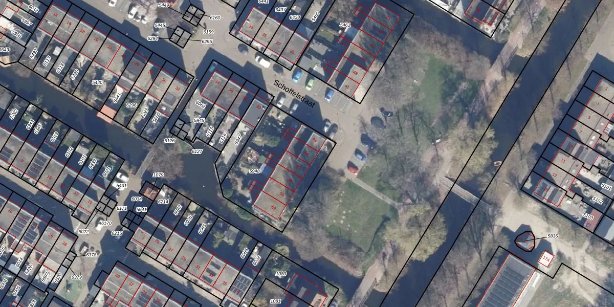Het perceel waarop Schoffelstraat 44 staat heeft een oppervlakte van 850 m². Dit is een groot perceel. De perceeloppervlakte wordt geregistreerd door het Kadaster. Gedetailleerde informatie over de maten van dit perceel kunt u vinden in het rapport Kadastrale kaart met maatvoering van Schoffelstraat 44.