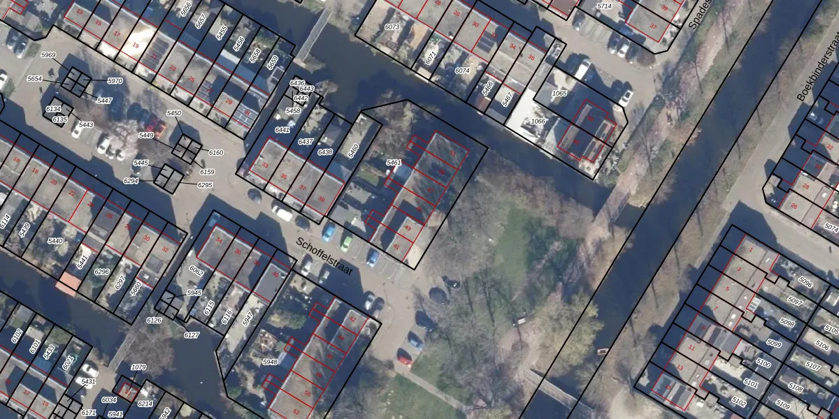 Het perceel waarop Schoffelstraat 45 staat heeft een oppervlakte van 847 m². Dit is een groot perceel. De perceeloppervlakte wordt geregistreerd door het Kadaster. Gedetailleerde informatie over de maten van dit perceel kunt u vinden in het rapport Kadastrale kaart met maatvoering van Schoffelstraat 45.