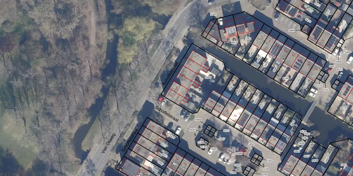 Het perceel waarop Schoffelstraat 9 staat heeft een oppervlakte van 944 m². Dit is een groot perceel. De perceeloppervlakte wordt geregistreerd door het Kadaster. Gedetailleerde informatie over de maten van dit perceel kunt u vinden in het rapport Kadastrale kaart met maatvoering van Schoffelstraat 9.