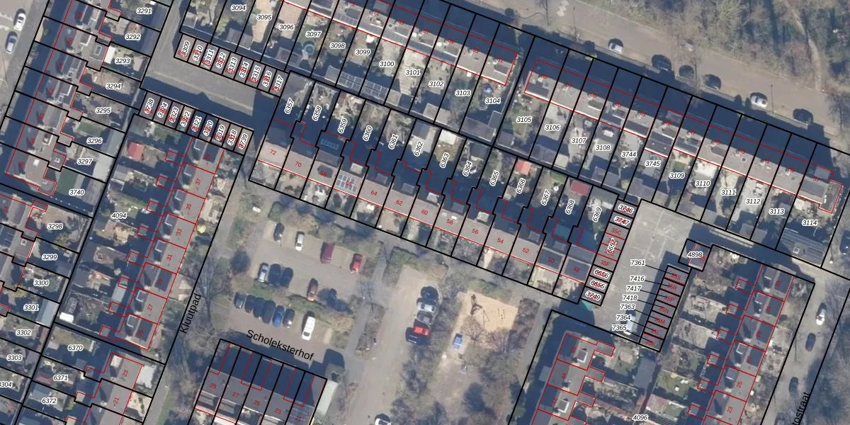 Het perceel waarop Scholeksterhof 60 staat heeft een oppervlakte van 174 m². Dit is een middelgroot perceel. De perceeloppervlakte wordt geregistreerd door het Kadaster. Gedetailleerde informatie over de maten van dit perceel kunt u vinden in het rapport Kadastrale kaart met maatvoering van Scholeksterhof 60.