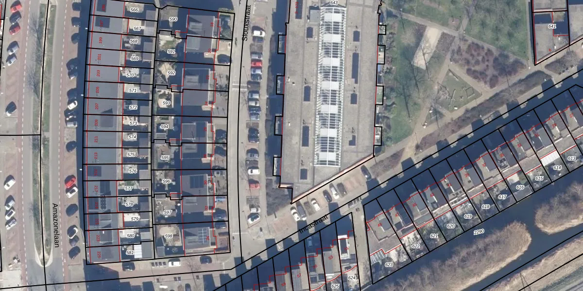 Het perceel waarop Siouxstraat 145 staat heeft een oppervlakte van 3945 m². Dit is een zeer groot perceel. De perceeloppervlakte wordt geregistreerd door het Kadaster. Gedetailleerde informatie over de maten van dit perceel kunt u vinden in het rapport Kadastrale kaart met maatvoering van Siouxstraat 145.